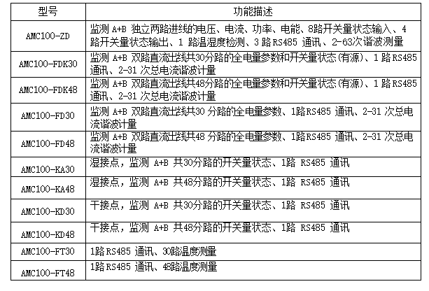 監測 A+B 獨立兩路進線的電壓、電流、功率、電能、8路開關量狀態輸入、4路開關量狀態輸出、1 路溫濕度檢測、3 路 RS485 通訊、2-63次諧波測量