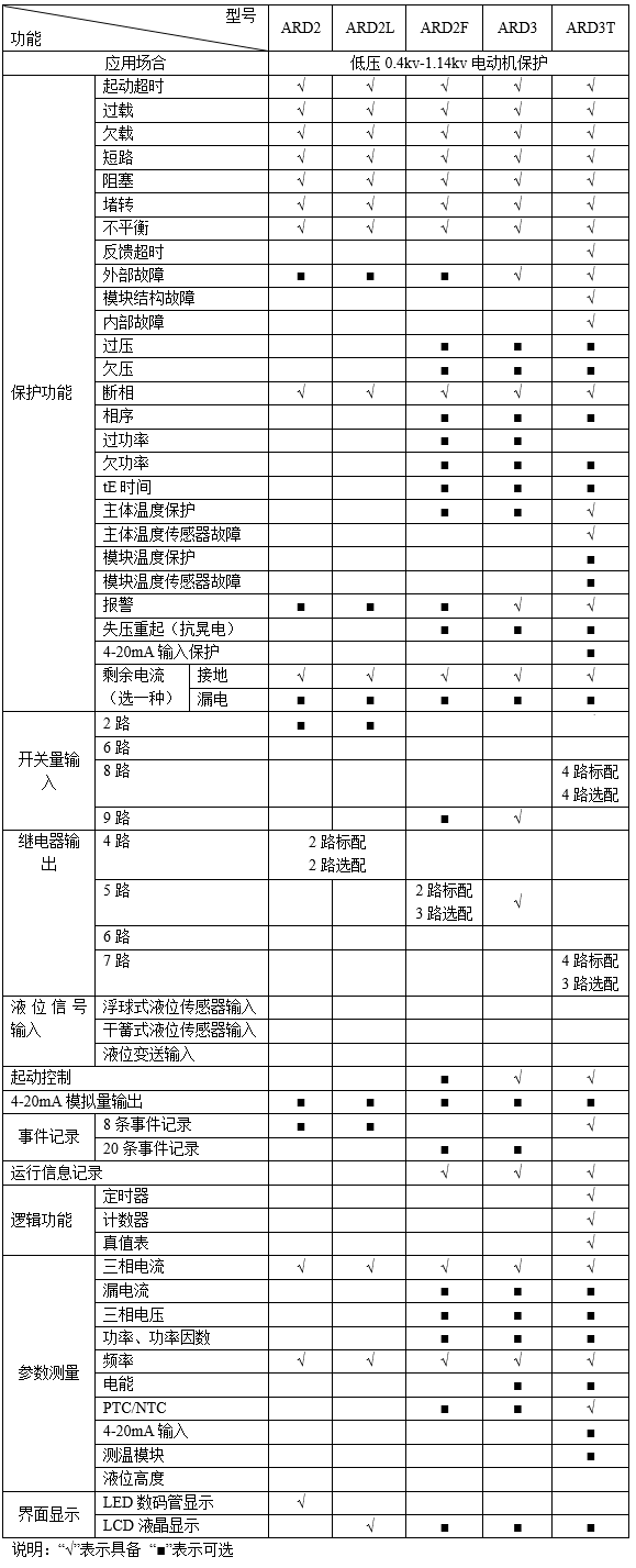 該系列低壓電動機保護器,具有過載、斷相、不平衡、欠載、接地/漏電、堵轉等保護功能。可與接觸器、電動機起動器等電器元件構成電動機控制保護單元,具有遠程自動控制、現場直接控制、面板指示、信號報警、現場總線通信等功能。