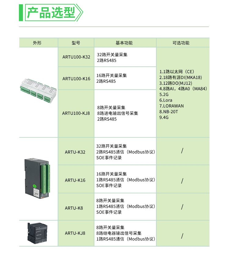 具體型號:ARTU-KJ8 技術要求:8路開關量采集8路繼電器輸出信號采集 通訊協(xié)議:RS485接口/Modbus-RTU協(xié)議 輔助電源:AC/DC 220V