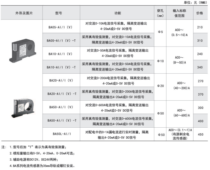 BA交流電流傳感器