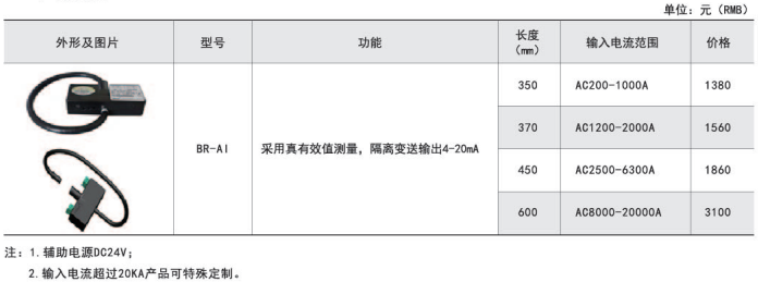 BR系列產(chǎn)品應用電磁感應原理,對電網(wǎng)中的交流大電流進行實時測量,采用真有效值和線性補償技術,將其隔離變換為標準的直流信號輸出