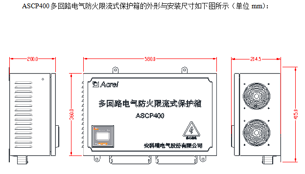 ■ 剩余電流監測功能。保護箱可以監測出線剩余電流,當被監測線路剩余電流超過報警設定值時,保護箱發出聲光報警信號,可預先單獨設置限流單元是否啟動限流保護。