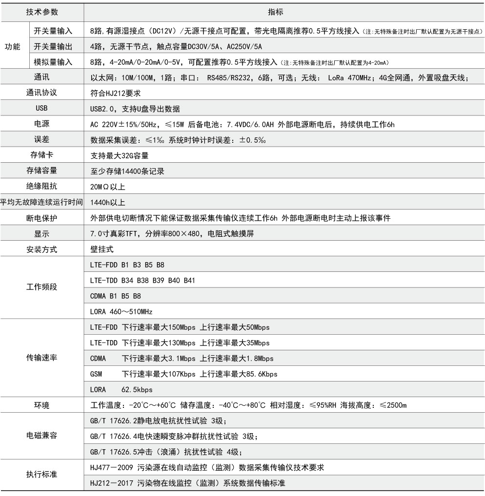 觸摸屏顯示,8 路開關量輸入,4 路開關量輸出,8 路模擬量輸入,SD 卡 數據存儲,USB 數據讀取,以太網通訊,Lora 通訊,485/232 通訊,4G通訊