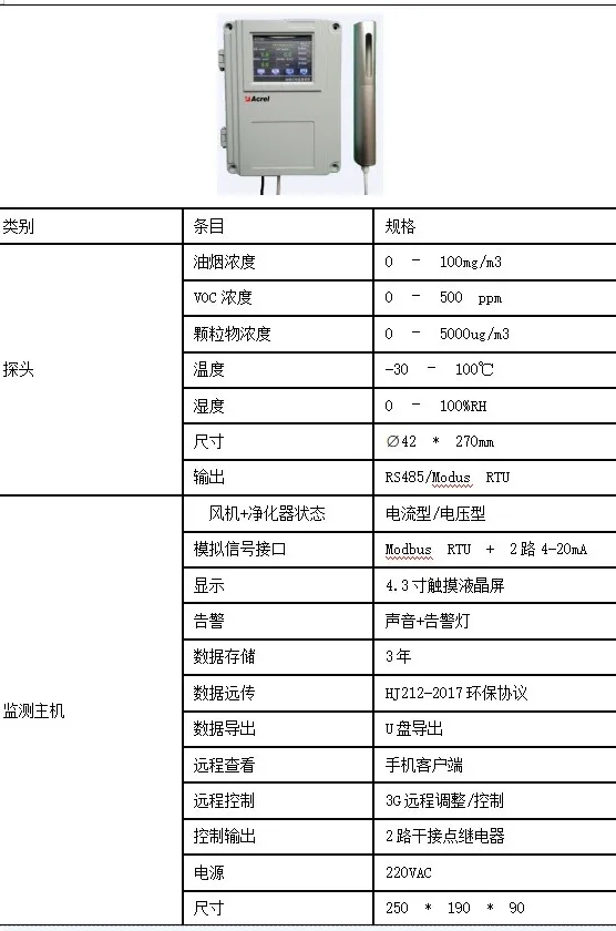 (2)油煙監(jiān)測主機