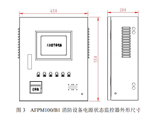 AFPM100/B1 消防設(shè)備電源狀態(tài)監(jiān)控器的外形尺寸為: 550*450*200(H*L*W)mm,安裝尺寸為 415×370(H*W)