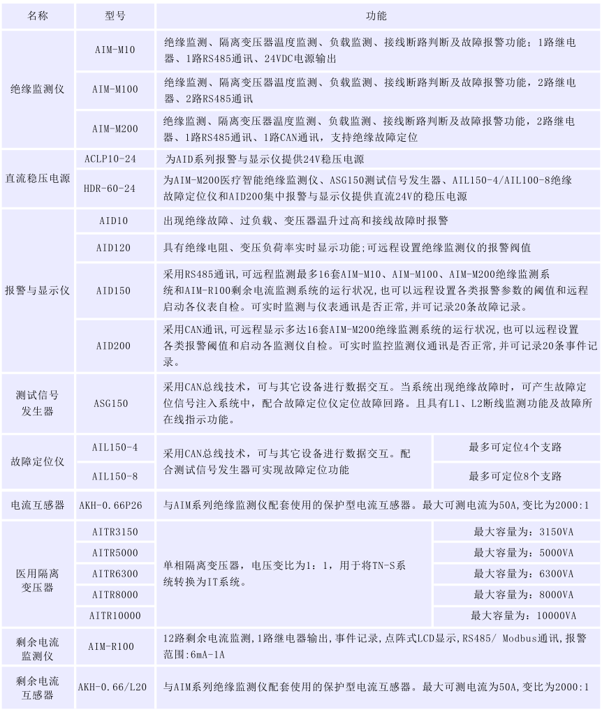 安科瑞IT配電監測系統適用于各類交流、直流、交直流混合的不接地系統,實時監測不接地系統對地的絕緣狀況,當監測到系統對地發生絕緣故障時,及時發出報警信息,提醒工作人員及時排查故障,消除隱患,保障系統安全可靠的運行。產品主要包括醫用隔離電源系統產品和AIM-T系列工業用絕緣監測產品。