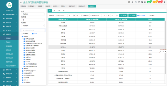 平臺(tái)具備定時(shí)抄表匯總統(tǒng)計(jì)功能,用戶可以自由查詢平臺(tái)正常運(yùn)行以來(lái)任意時(shí)間段內(nèi)各配電節(jié)點(diǎn)的用電情況。