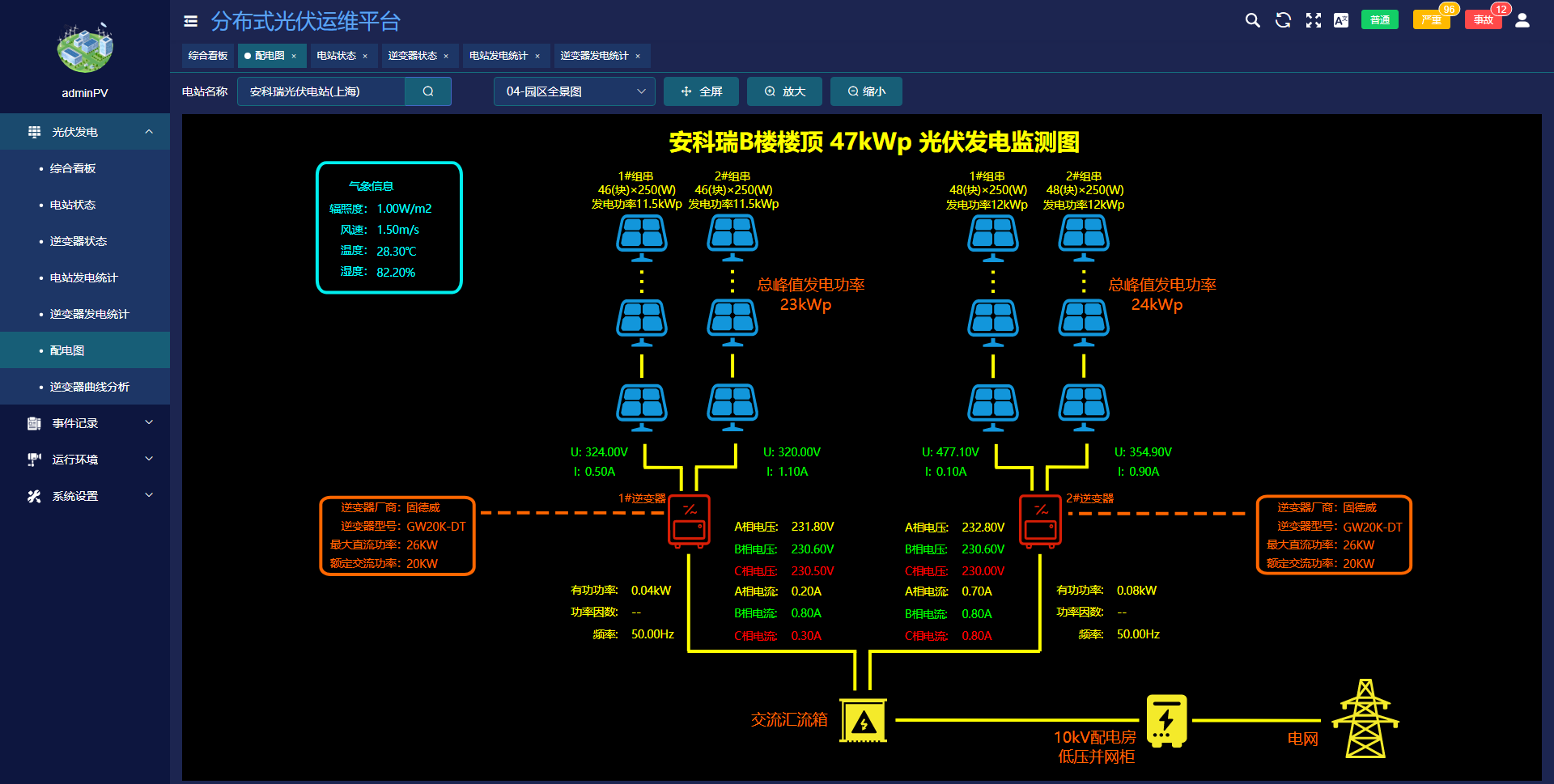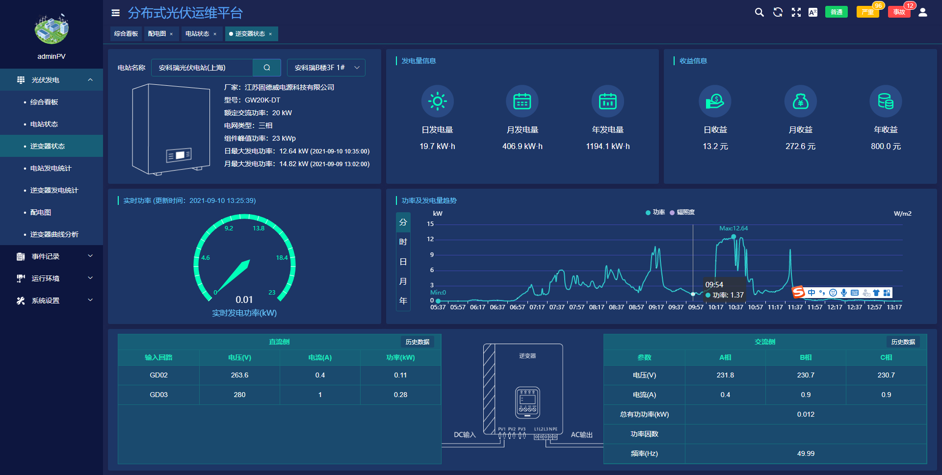 實(shí)時(shí)展示逆變器交、直流側(cè)的數(shù)據(jù)。