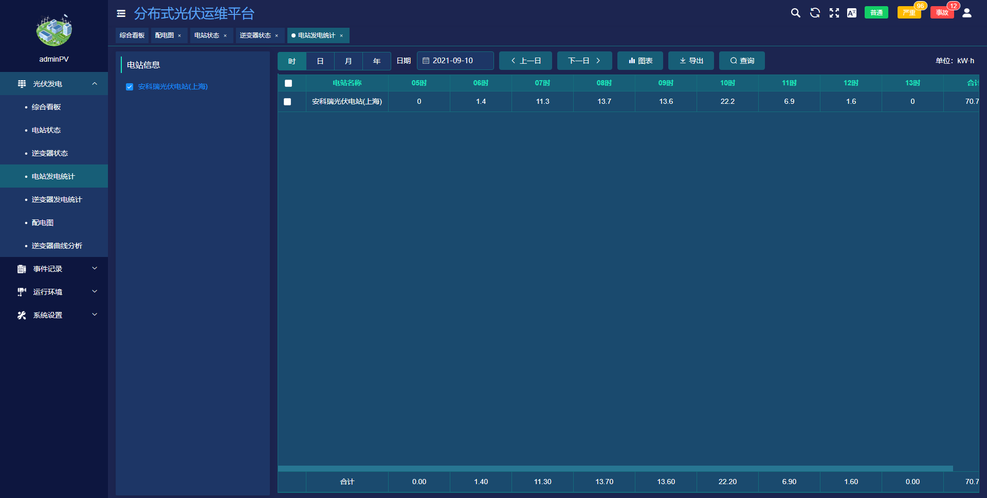 展示所選電站的時(shí)、日、月、年發(fā)電量統(tǒng)計(jì)報(bào)表。
